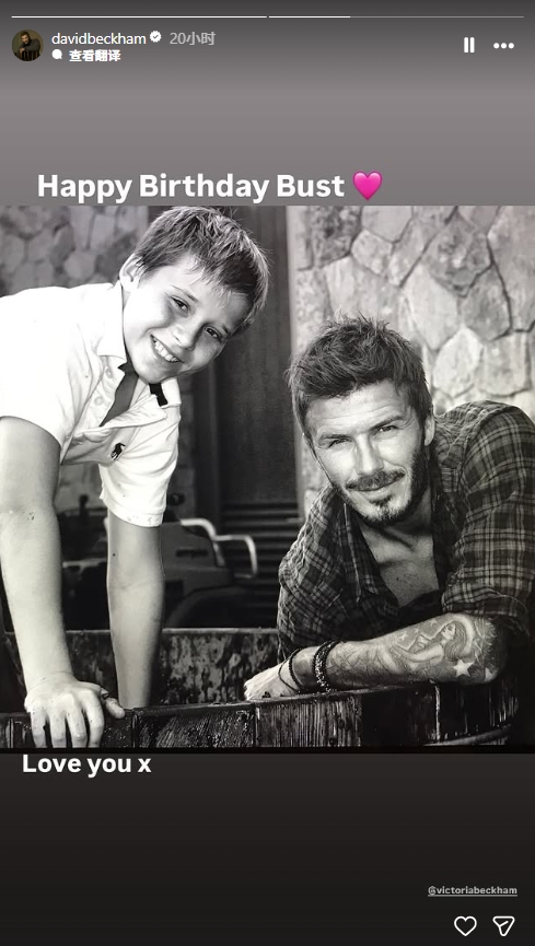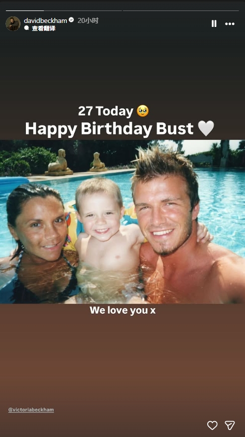 03月05日讯 3月4日是贝克汉姆长子布鲁克林的27岁生日,昨日贝克汉姆和妻子维多利亚都更新社媒为其庆生,两人在社媒写道:我们爱你。