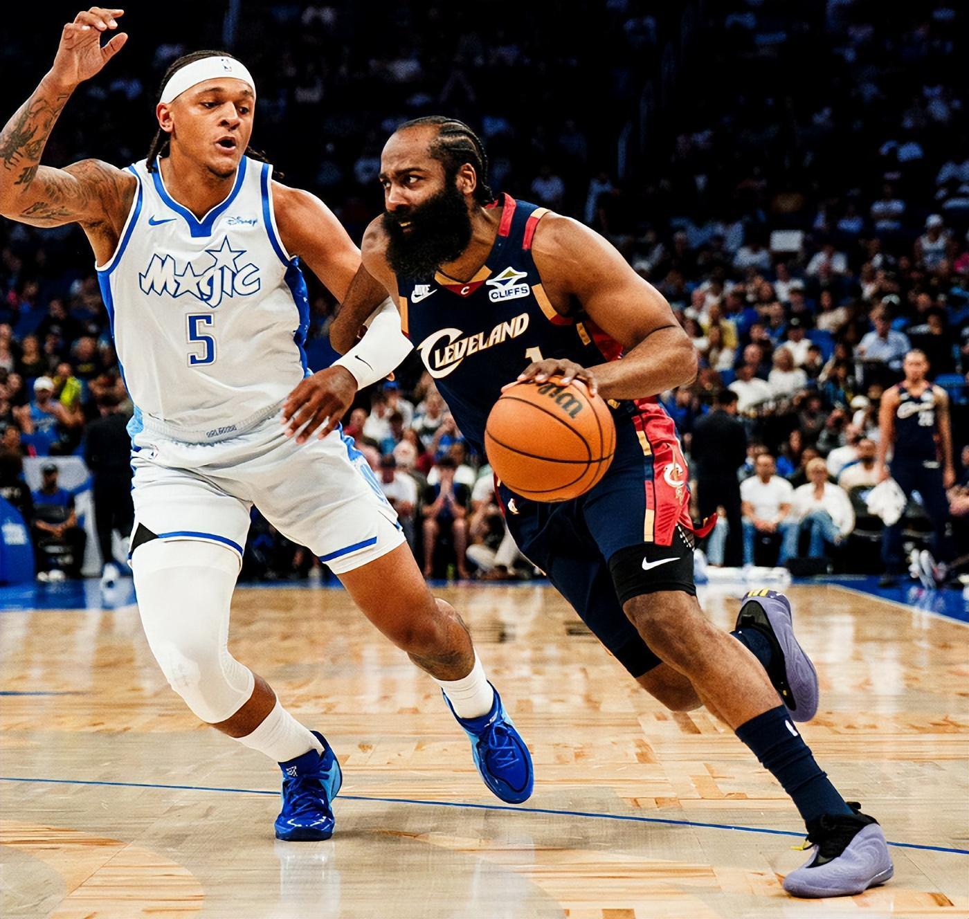 骑士队排在东部第4位,魔术队排在东部第5位,两队是季后赛潜在对手,两队都想赢,也都打得很有针对性。骑士队拥有比魔术队凶猛数倍的进攻火力,米切尔、哈登和埃利斯三个火枪手合力轰下75分+14记三分球,全队三分线外44投17中,三分球命中率高达38.4%。作为对比,魔术队三分线外35投仅12中,三分球命中率仅有34.3%。骑士队靠着三分球续命,贝恩却用一记不讲理三分球颜射埃利斯收割比赛,杀人诛心。用哈登的话来说,不是埃利斯防守不好,而是贝恩投进了高难度巨星球。